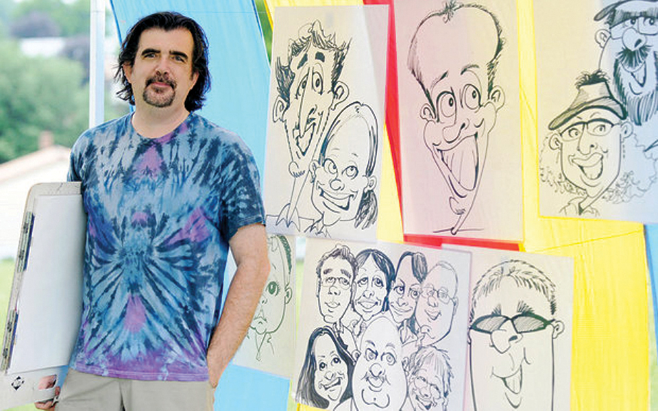 Hi, I’m Chip Mock. I began drawing caricatures professionally at the 1980 Three Rivers Arts Festival while a student the Art Institute of Pittsburgh, studying under renowned caricaturist, John Johns. Now in my 40th year as a caricaturist, I’ve happily drawn hundreds of thousands smiling faces, all over Central PA and beyond! I travel to many arts festivals in PA and entertain at parties, proms, weddings, company picnics, countless Penn State events and even on cruise ships. My black and white style is fast and funny and my caricatures are large (18 x 24) and exaggerated. I draw at the speed of 1-2 minutes per person, so at parties and events I can easily draw over 30 people per hour. Line up the children and we can see speeds of 45 or more per hour. At a 3 hour event you are looking at over 100 happy guests drawn – who had a blast watching friends getting some pretty funny caricatures that will end up on social media in seconds and later hanging on their wall at home. Put a chisel-tip marker in my hands and some BIG paper on my lap and see that I am all business as I happily twist your facial features all over the paper! And yep, the drawing will likely "look like more like you, than you look like you!" Sound like fun? Please contact me to see how we can work together to draw a crowd at your event.